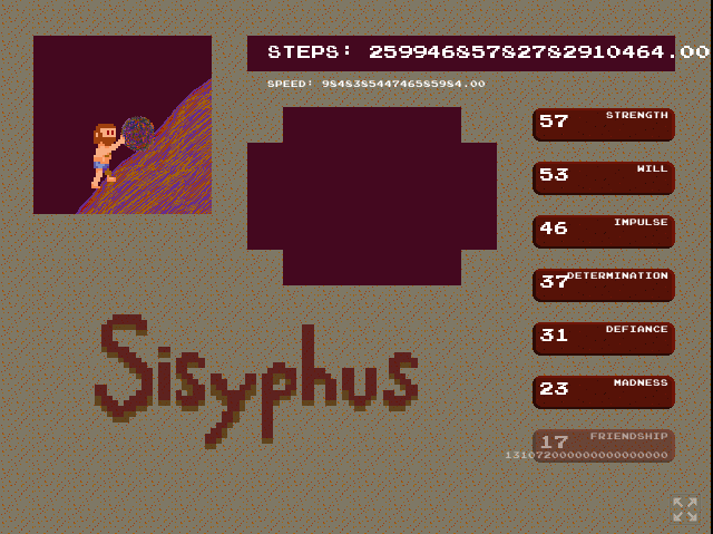 Make Sisyphus' status grow to help him never, ever make the rock reach the top of the mountain.